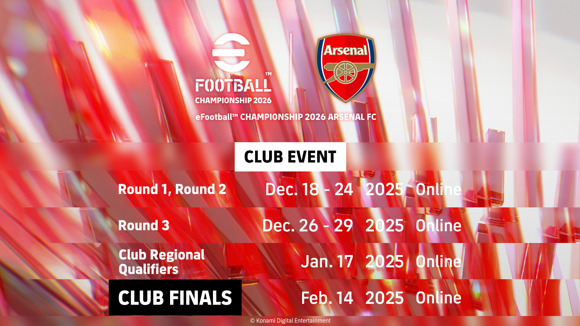 For more details on the eFootball™ Championship 2026 Club Events check our social media channels and the official championship's website at https://efootballchampionship.konami.net/