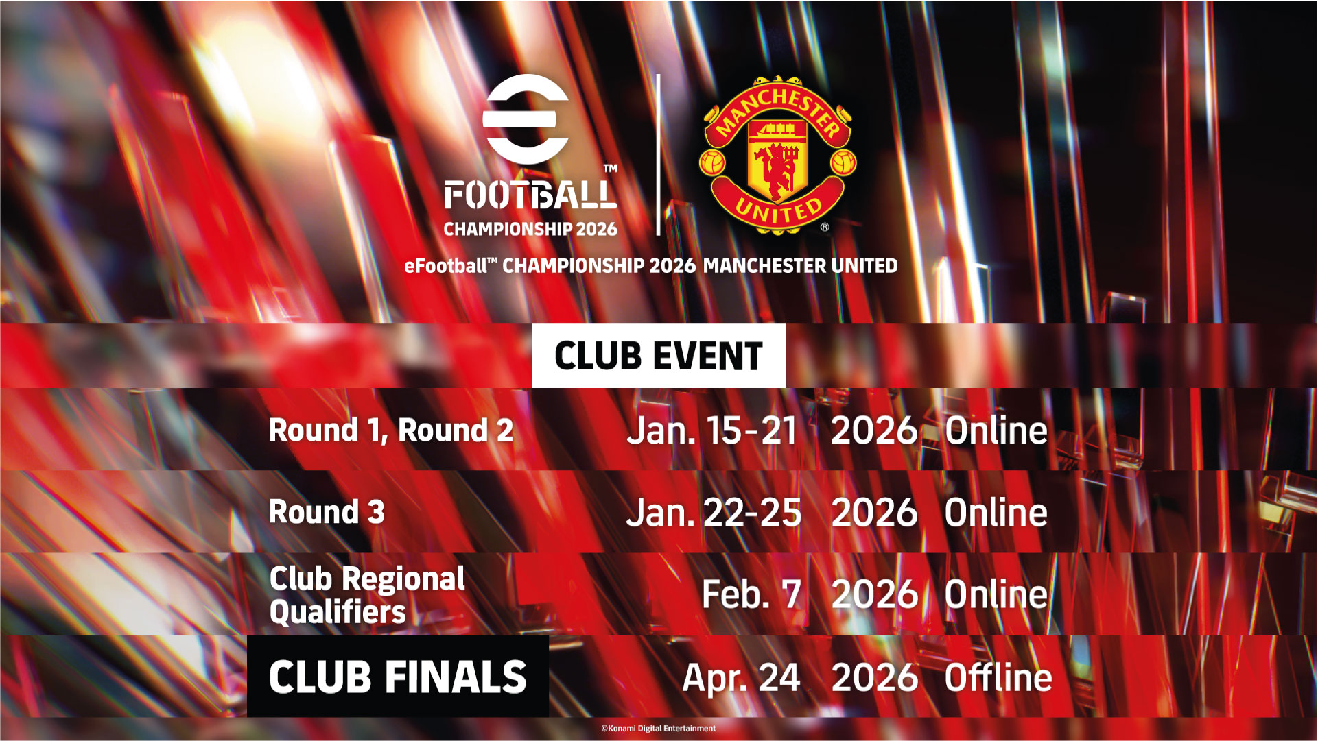 For more details on the eFootball™ Championship 2026 Club Events check our social media channels and the official championship's website at https://efootballchampionship.konami.net/